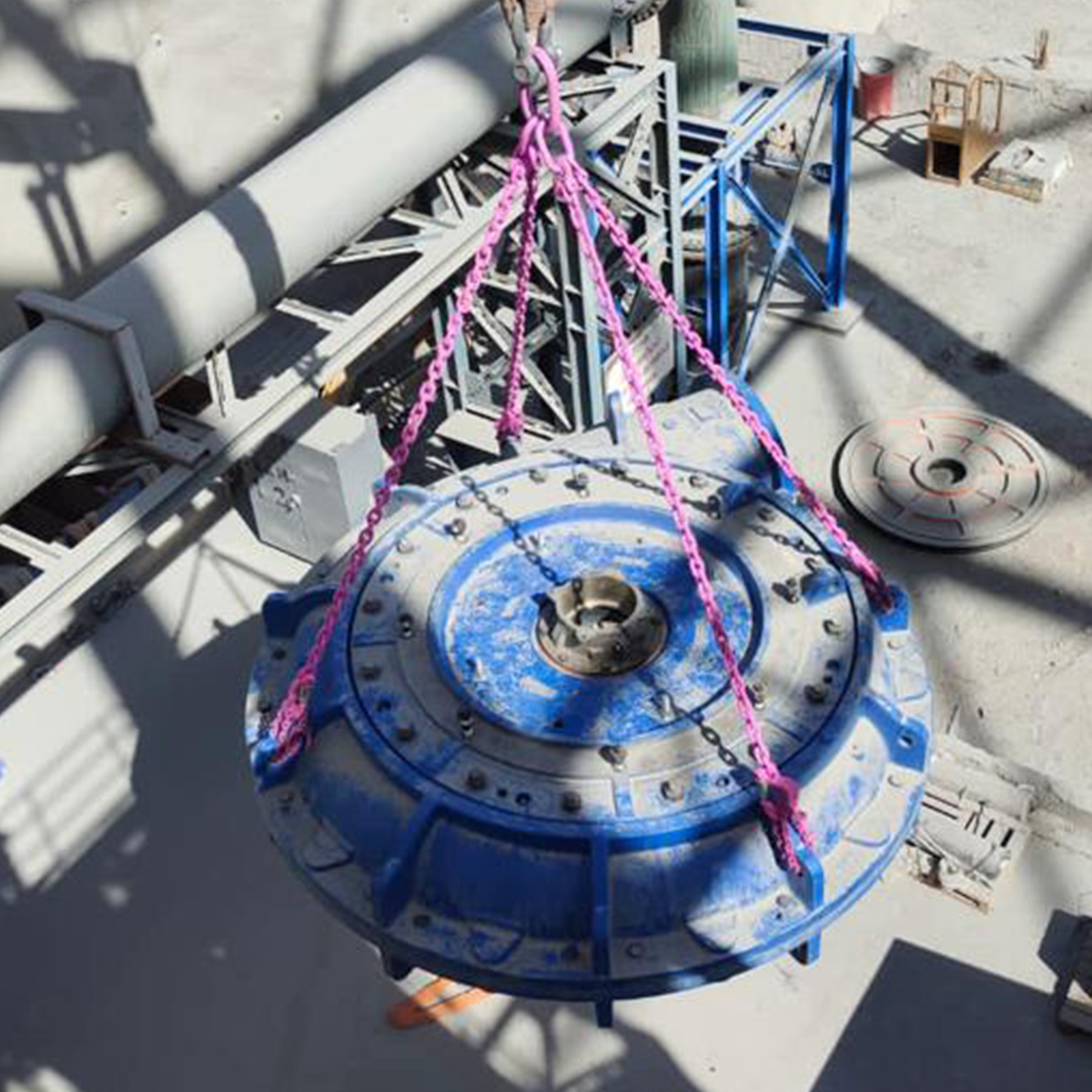 Einsatz in der Wüste: Heben und Wenden einer tonnenschweren Pumpe wird leichter und sicherer mit RUD Endlosketten.